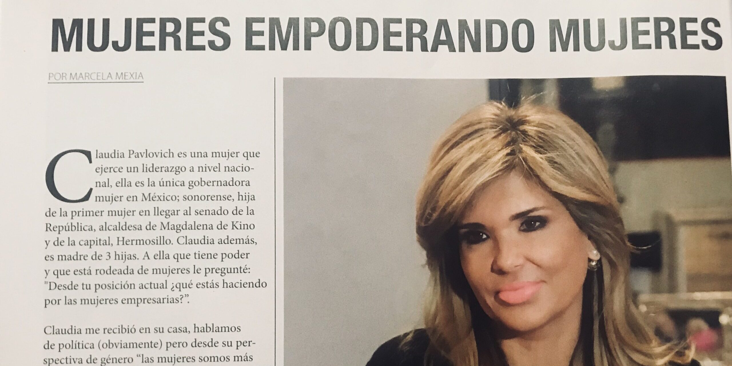 Claudia Pavlovich es una mujer que ejerce un liderazgo a nivel nacional, ella es la única gobernadora mujer en México; sonorense, hija de la primer mujer en llegar al senado de la República, alcaldesa de Magdalena de Kino y de la capital, Hermosillo. Claudia además, es madre de 3 hijas. A ella que tiene poder y que está rodeada de mujeres le pregunté: desde tu posición actual ¿qué estás haciendo por las mujeres empresarias?
